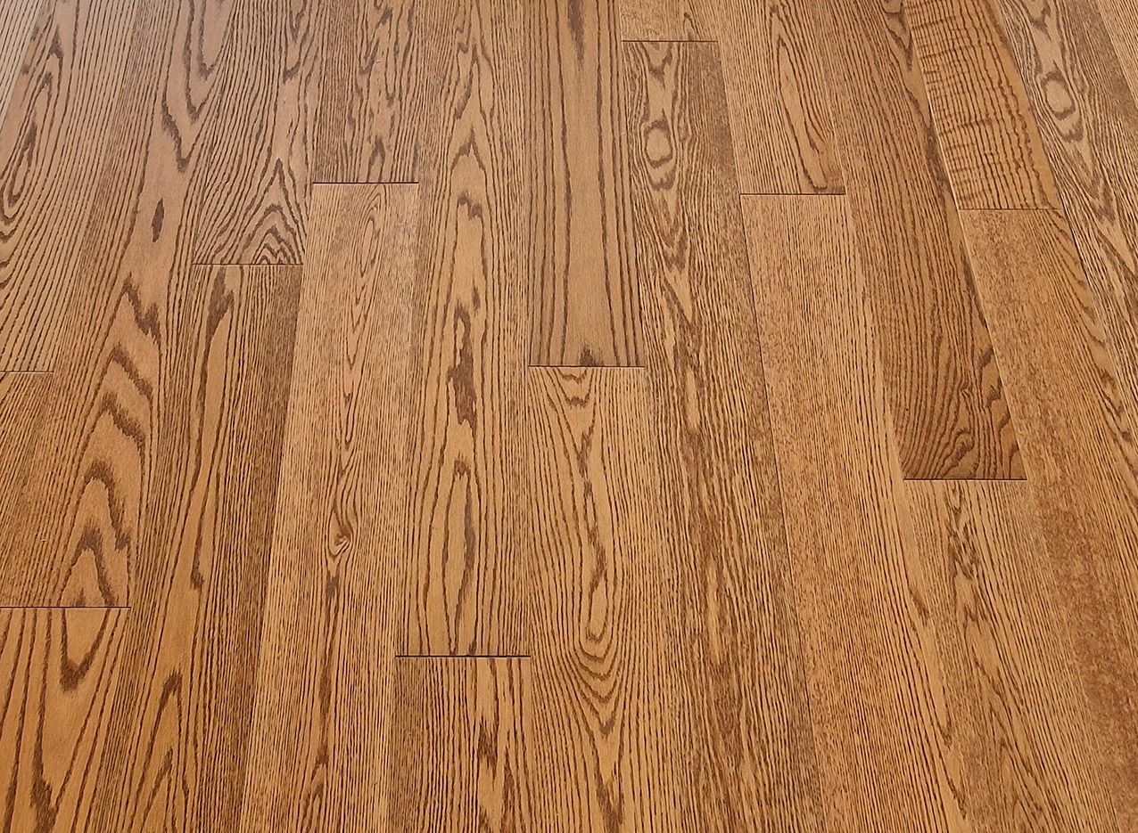 Parquet Doghe in Rovere Americano ossidato, spazzolato, verniciato, Marrone Nocciola. Proposto nella scelta AB, caratterizzata da venatura rigata e fiammata, uniforme di colore, ammessi saltuari e piccoli nodi.
