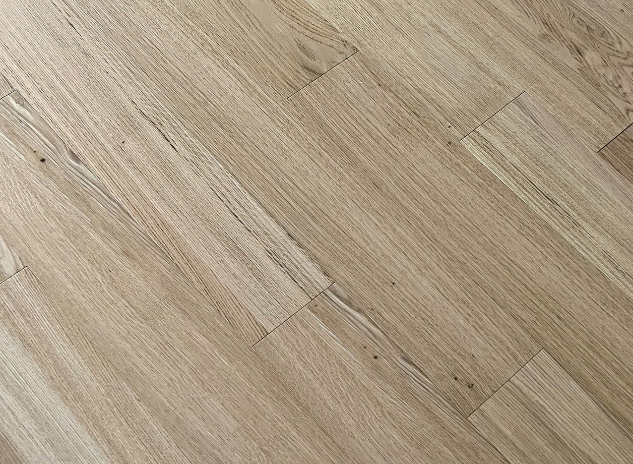 Pavimento con strato nobile di vero legno Rovere proposto nel trattamento Naturale con scelta AB. Si tratta di un pavimento in legno duro con qualsiasi disegno di venatura
